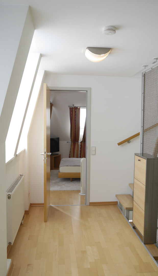 Diese Einheit hat den Namen "Treppchen-Suite" bekommen, da hier die gute Aussicht direkt auf das Gasthaus "Am Treppchen" führt. Ganz nah am Wasser gelegen, werden Sie von dieser Suite traumhaft über die Dächer von Rodenkirchen schauen und den Rheinblick genießen.